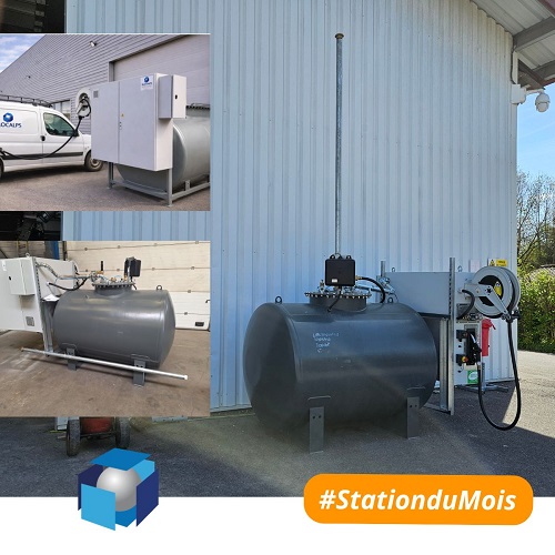 Il s'agit d'une une installation hors-sol ECOCUVE comprenant une citerne double paroi de 2000 L, un groupe de pompage 8 m³/h et une pompe double usage permettant la distribution et le dépotage, y compris sans pompe sur le camion de livraison. Cette solution a séduit le client car elle ne nécessite pas de génie civil, facile d'utilisation et sa mise en service est rapide.
